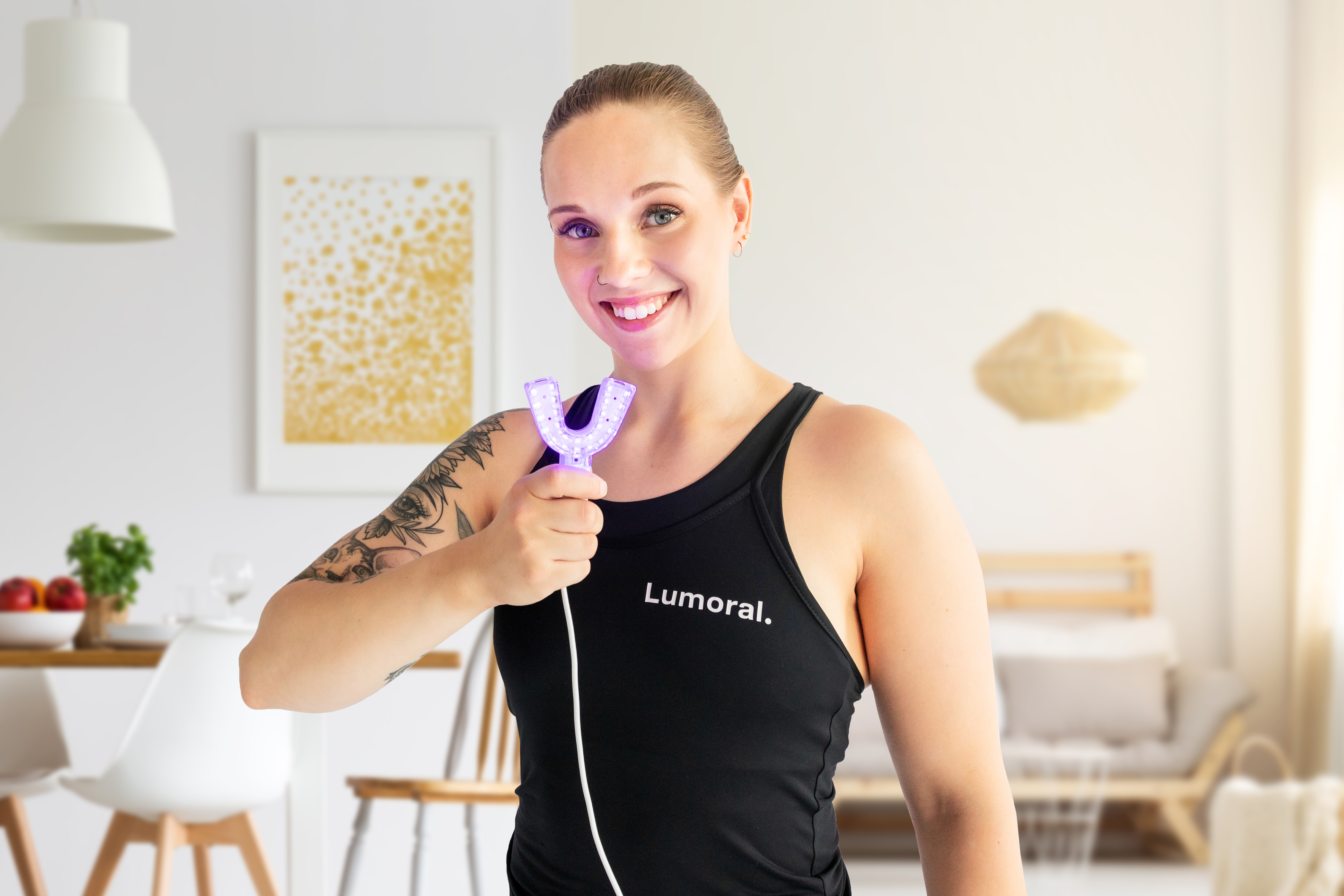 De Lumoral®-methode is gebaseerd op een gepatenteerd, door licht geactiveerd mondwater dat 99,9% van de schadelijke bacteriën op het tandoppervlak en aan de tandvleesrand doodt, terwijl het de gezonde bacteriën in de mond stimuleert.