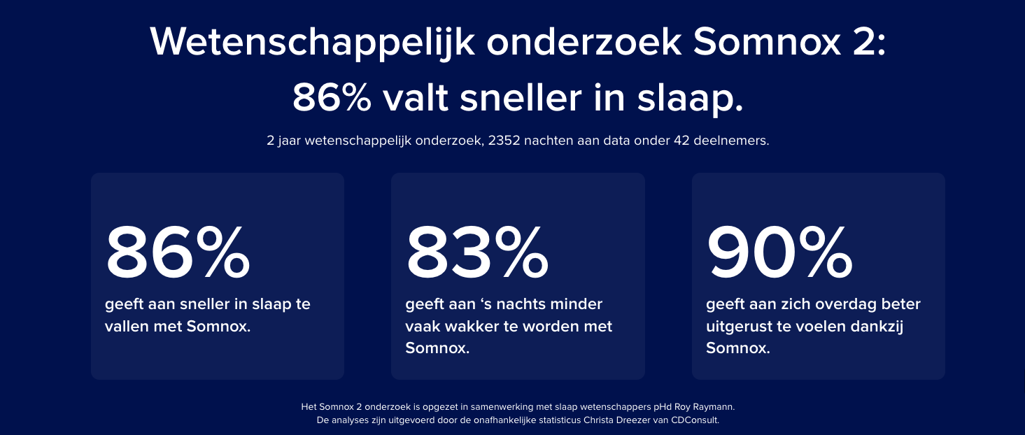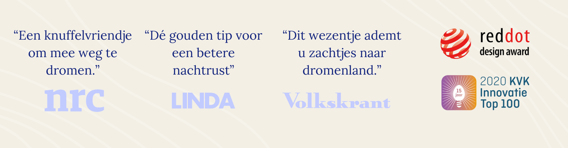 Daar zit de kracht van de Somnox: sensoren meten je ademhalingsritme en passen zich op je aan. Door het actief en geleidelijk vertragen van de ademhaling begeleidt de Somnox je onbewust naar een kalme geest en diepere slaap - effectief en zonder medicatie. Sinds de marktintroductie in 2019 zijn al 15.000 gebruikers wereldwijd geholpen met het verbeteren van hun slaap.