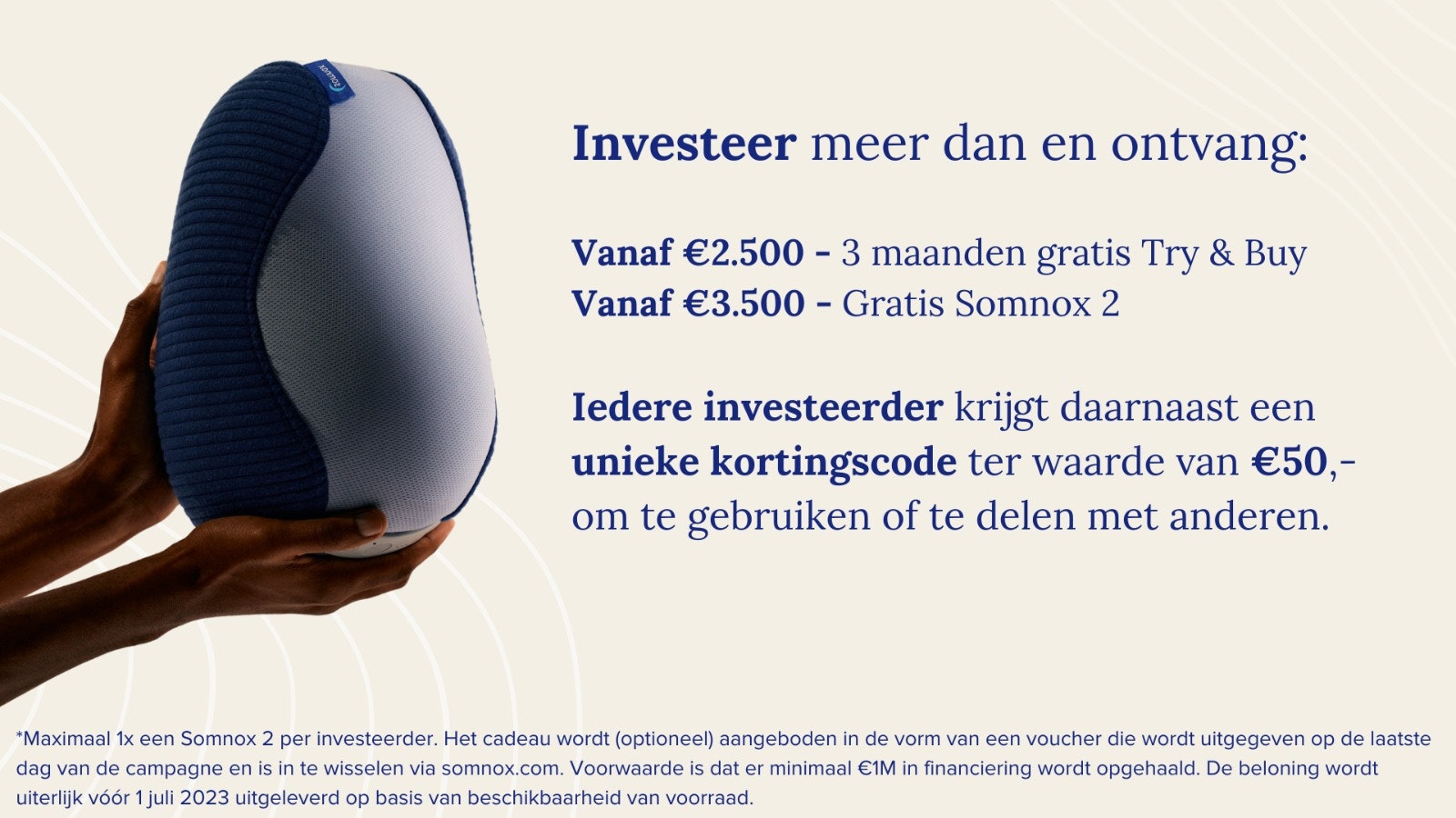 Investeer in Somnox met de kans om mede-eigenaar te worden van dit snelgroeiende bedrijf. Samen met u kan Somnox 100 miljoen mensen beter helpen slapen vóór 2030.